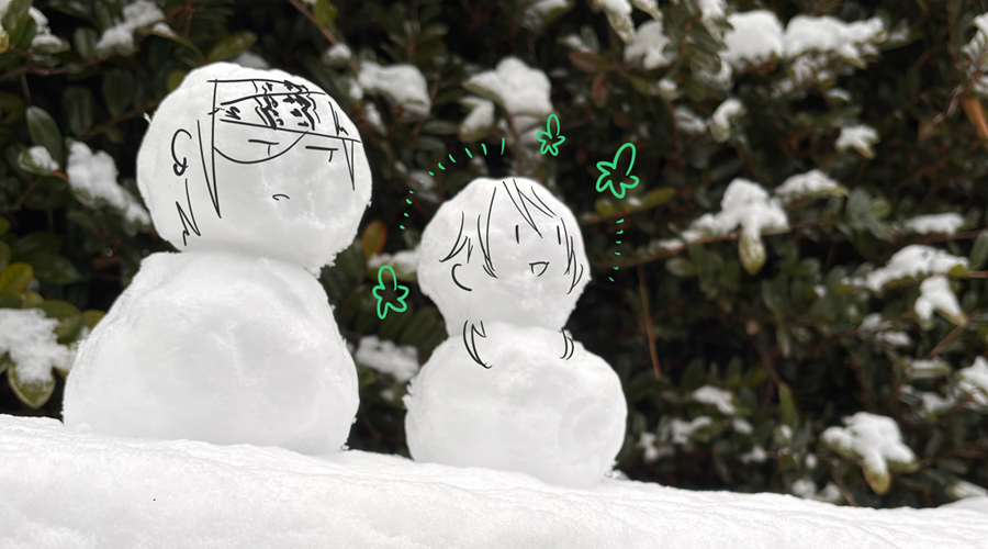 普段雪の降らない地域でも雪積もった時にはしゃいで雪だるま作って遊んでピラメキーノしたのでお顔描いて遊んだやつ。